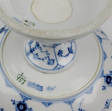 Royal Copenhagen, musselmalet opsats med buet svejfet kant, dessin 13, H. 13,5 cm. 1. sortering.