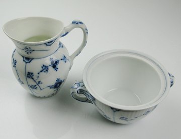 Royal Copenhagen, musselmalet sukkerskål og B&G flødekande