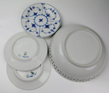 Royal Copenhagen, 3 sidetallerkener og tysk helblonde skål