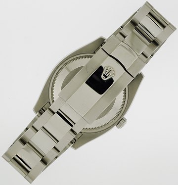 Herrearmbåndsur fra Rolex, model Oyster Perpetual Date, M-serie, ref.nr.: 115210, i kasse og m. oysterlænke af stål, midnatsblå skive m. stregindeks, dataangivelse ved 3" position, riflet lynette, safirglas, automatisk urværk. Ø. 34 mm.