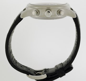 Herrearmbåndsur fra International Watch Company (IWC), model Fliegeruhr, i kasse af stål, sort skive m. arabertal, chronograffunktioner, safirglas, monteret m. original sort læderrem m. foldespænde, automatisk urværk. Ø. 42 mm.