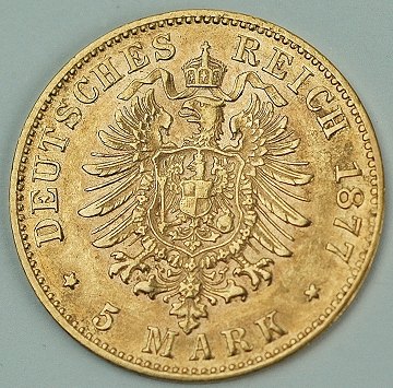 Bayern, Ludwig II, 5 mark GULD 1877D - KM 904