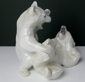 Kgl. Porcelains figurgruppe, dess.nr. 1107, i form af legende isbjørneunger. H. 14 cm. 1. sortering.