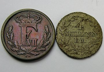 Frederik VII, 1/2 rigsbankskilling 1852 samt 4 skilling 1856 - H. 11B, 13