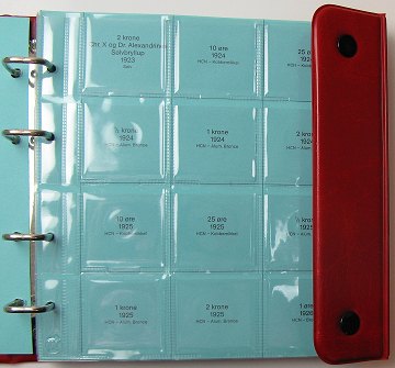Møntholderalbum fra Pilegaard m. indsatssider til hartbergere til mønter fra 1924-1947.