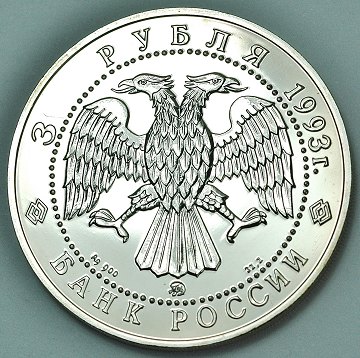 Rusland, 3 rubler SØLV 1993 Proof - Y# 323 *1 ounce FINSØLV*
