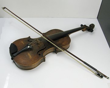 Antik violin med resonanskasse af fyrretræ med bue