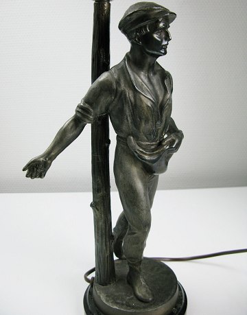 Gl. bordlampe med patineret lampefod i form af såmand