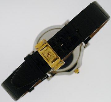 Herrearmbåndsur fra Raymond Weil, model Parsifal, ref.nr.: 9189, i kasse af 14 kt. guld og stål, cremefarvet skive m. romertal ved 3, 9 og 12, datoangivelse ved 6" position, optrækskrone i guld prydet m. carbochonsleben safir, monteret m. original sort læderrem m. foldespænde, safirglas, quartz urværk. Ø. 34 mm.