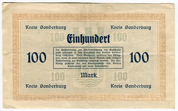 Nødpengeseddel 100 mark Sønderborg 1918 - Sieg 91