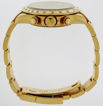 Herrearmbåndsur fra Rolex, model Daytona, ref.nr.: 116528, Y-serie, chronometer i kasse og m. oysterlænke af 18 kt. guld, champagnefarvet skive m. stregindeks prydet m. brillantslebne diamanter, chronograffunktion, automatisk urværk, safirglas. Fra 2002. Ø. 40 mm.