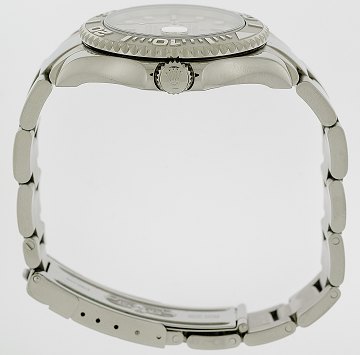 Midsize armbåndsur fra Rolex, model Yacht-Master, ref.nr.: 168622, i kasse af og m. oyster-lænke i stål, sølvfarvet skive m. punktindeks, justerbar lynette af platin, datoangivelse ved 3" position, safirglas, automatisk urværk. Ø. 35 mm.
