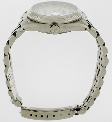 Midsizeur fra Rolex, model Datejust, ref.nr.: 68273, i kasse og m. jubileelænke af stål, perlemorsskive prydet m. brillantslebne diamanter, hvidguldslynette, datoangivelse ved 3" position, safirglas, automatisk urværk. Fra 1990. Ø. 30 mm.