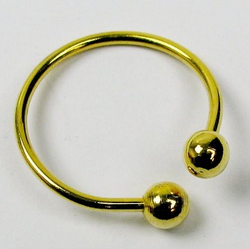 Ring af gulddoublé med åben skinne, afsluttet med doubléperler.