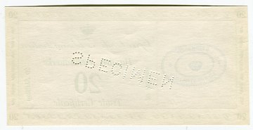 20 skilling Handels Værdimærke Specimen - UCIRKULERET