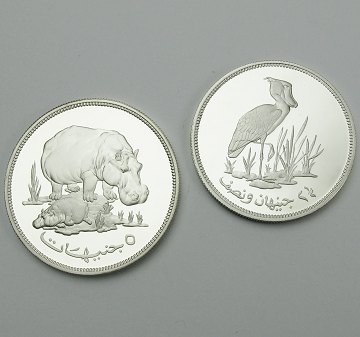 Sudan, 2½ og 5 pounds møntsæt slået i proof-kvalitet, henholdsvis KM 70 og KM 71.