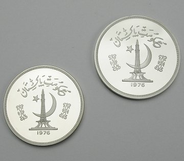 Pakistan, 100 og 150 rupees møntsæt sterling sølv, henholdsvis KM 40 og KM 42.
