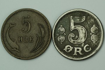 Christian IX & X, 5 ører 1874 og 1919 - H. 15B, 17A