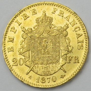 Frankrig, Napoleon III, tête laurée 20 francs GULD 1870A