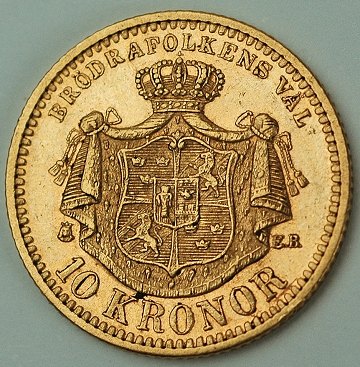 Sverige, Oscar II, 10 kr GULD 1895 - Sieg 87, NM 32