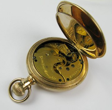 Amerikansk, dobbeltkapslet lommeur af gulddoublé med hvid emailleret skive, romertal og stregindikation samt separat sekundviser. Urkasse Diam. 50 mm.