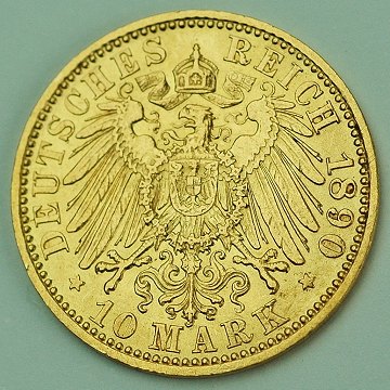 Preussen, Wilhelm II, 10 mark GULD 1890A - KM 520