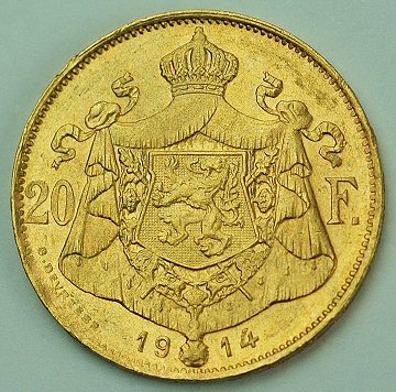 Belgien, Albert I, 20 francs GULD 1914 - KM 79