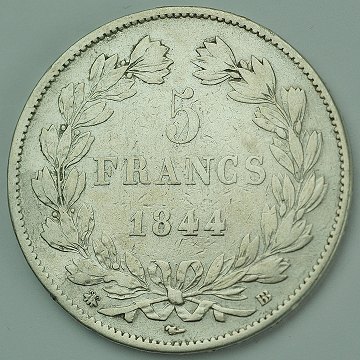 Frankrig, Louis Philippe I, 5 francs SØLV 1844BB - KM 749.3