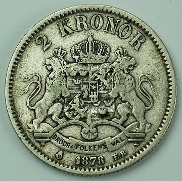 Sverige, Oscar II, 2 kr 1878 - Sieg 58C, SM 46