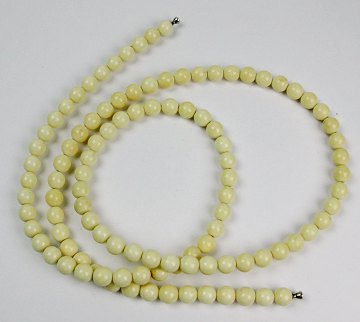Halskæde uden kuglelås med glatpolerede, perleformede 7½ mm. sten. L. 81 cm.