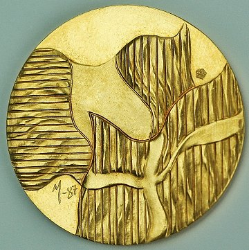 Medaille af guld, præget i anledning af det dansk-franske kulturår 1987-88. Medaillen er tegnet af H.M. Dronningen og præget hos la Monnaie de Paris. Ø. 30 mm.