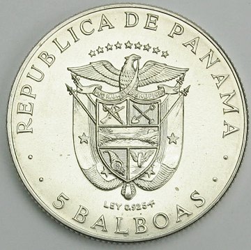 Panama, 5 balboas STERLINGSØLV 1970 (U) - KM 28