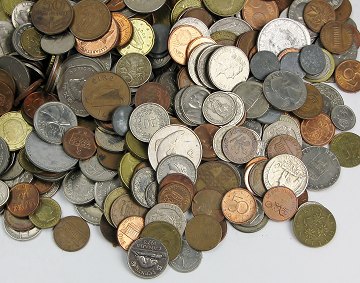Lot "hele verden" m. bl.a. en del gangbare mønter, heriblandt mere end 15 euro i 1, 2, 5, 10, 20 og 50 cents. Der er mønter fra bl.a.: Marokko, England, USA, Schweiz, Korea, Sverige, Irland, Panama, Venezuela, Rumænien, Norge, Argentina.