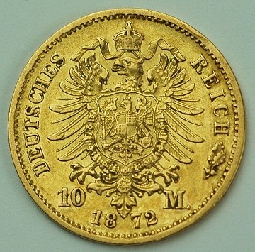 Preussen, Wilhelm I, 10 mark GULD 1872B - KM 502