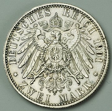 Preussen, Wilhelm II, 2 mark SØLV 1901A - KM 525