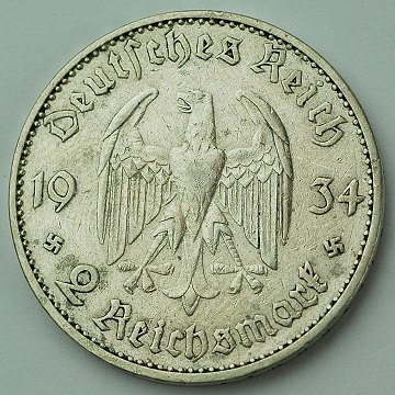 Tyskland, 2 mark SØLV "Garnisionskirke m. dato" 1934