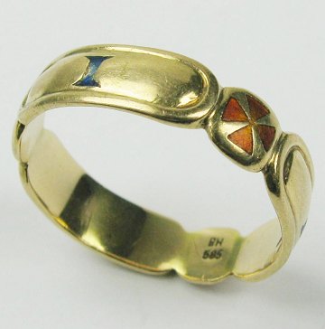 Logering af 14 kt. guld, prydet med malteserkors og D-S-I, Str. 74, vægt 7,3 gr.