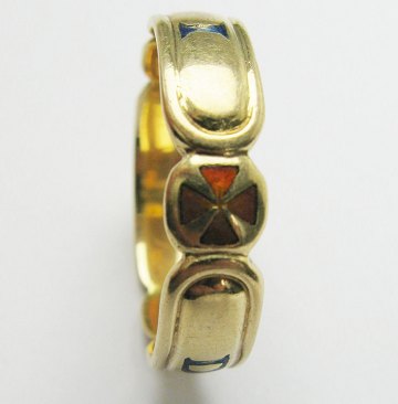 Logering af 14 kt. guld, prydet med malteserkors og D-S-I, Str. 74, vægt 7,3 gr.