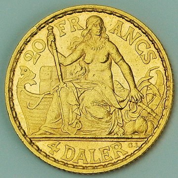 Dansk Vestindien, Christian IX, 4 daler/20 francs GULD 1905 - H. 30