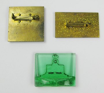 Lot bestående af emblem fra DDR's XI partidag "Solatentat", kampemblem position 80 samt emblem af flaskeglas mes svastika monument.