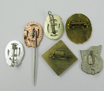 Lot bestående af FDJ emblem, Volksarmee emblem " Treu dedient" samt guld, sølv og bronze udmærkelsesnåle.