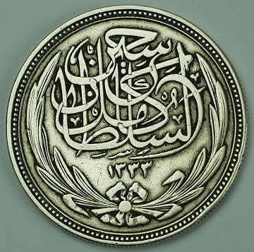 Egypten, Hussein Kamil, 20 piastres SØLV 1917 - KM 321