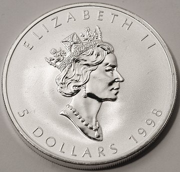 Canada, 5 dollars FINSØLV 1998 - KM 187 *1 ounce FINSØLV*