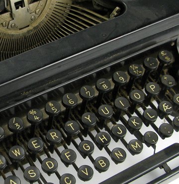 Skrivemaskine med dansk tastatur, fremstillet hos "Kappel Maschienenfabrik" i Chemnitz i 1930'erne. L. 28 cm. x B. 32 cm.