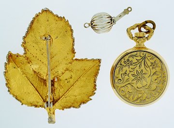 Forgyldt damelommeur og broche samt lås i STERLINGSØLV