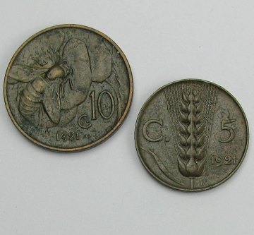 Italien, 2 og 10 centesimi 1921 - KM 60 og KM 59