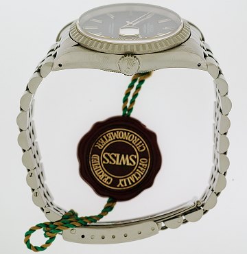 Herrearmbåndsur fra Rolex, model Datejust, ref.nr.: 16220, X-serie, i kasse og m. jubilee-lænke af stål, grå skive m. stregindeks, datoangivelse ved 3" position, hvidguldslynette, safirglas, automatisk urværk. Ø. 36 mm.