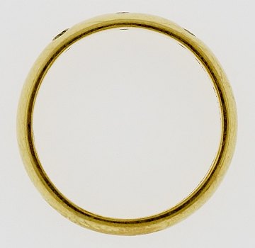 Glat ring af 14 kt. guld, prydet m. 3 brillantslebne diamanter på ialt ca. 0,09 ct. Str. 48.