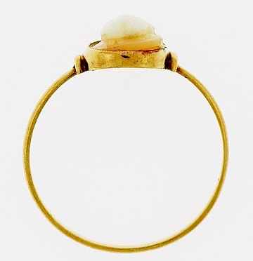 Ring af 14 kt. guld, prydet m. udskåret camé forstillende et kvindehoved i profil, stemplet "C.N." for Århus guldsmeden, N.C. Nielsen samt "585". Str. 58.