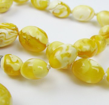Halssmykke af lyse, strukturerede ravperler